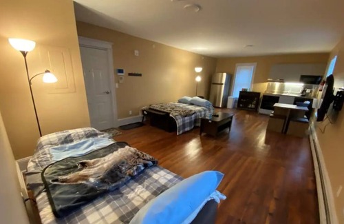 The building is a historical landmark known as The Dog built in 1903 with modern electrical, plumbing, heating and cooling. This is a multi room apartment, well lit apartment with a living room and a bedroom. The boat slip is across the street and can accommodate up to a 20ft boat. We have completely renovated the building and furnished the units with modern appliances. Come work remote, enjoy the lake, relax and have fun.