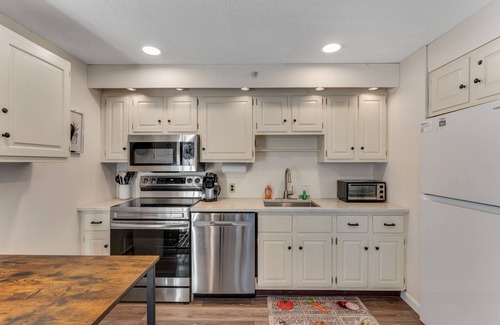 This comfy condo is conveniently located right on the side of Bromley Mountain and right across the street from the complex's clubhouse for a shared gas grill, seasonal pool, and a fitness center. The condo's many windows offer an abundance of natural light with views of the clubhouse and lush pine trees. There is also an indoor ski locker located at the main entrance to the building, so you won't have to worry about lugging your ski equipment upstairs.