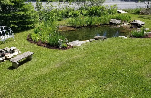 3 Bedroom log-sided cabin with large deck facing Woodford Lake with beautiful lake view. High ceiling Great Room with lots of space, private onsite parking, in quiet lakeside community - complete with 4 kayaks and a canoe. Wood stove and outdoor firepit and gas fireplace unit, lots of cupboard space. Beautiful!