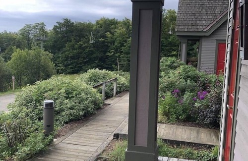 This 2100 sq. ft. townhome lies at the very heart of the original Jay Village, walking out directly above the Village Chairlift and offering a flexible living space for a larger family or group of families and friends and the best of Jay's ski-on ski-off locations. With a newly renovated kitchen, 5 bedrooms and 4 bathrooms, everyone can have the space that they need. Access via private entrance with a mud room for leaving all the outdoor gear, in summer and in winter. Enjoy free parking, outside space and a balcony with a serene view into the woods.