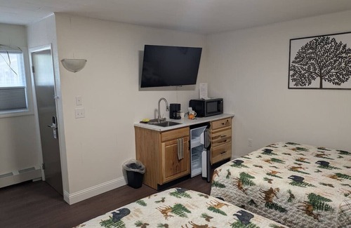 Walking distance to restaurants, bars, grocery store, shops, playground, bowling, and the Connecticut river boat launch for swimming and fishing and kayaking. We have direct trail access to the ATV and snowmobile trails from our parking lot. 2 Queen beds, 50in TV and kitchenette add convenience and comfort to your stay. All of our rooms are newly renovated. Come see what the Northeast Kingdom has to offer you!